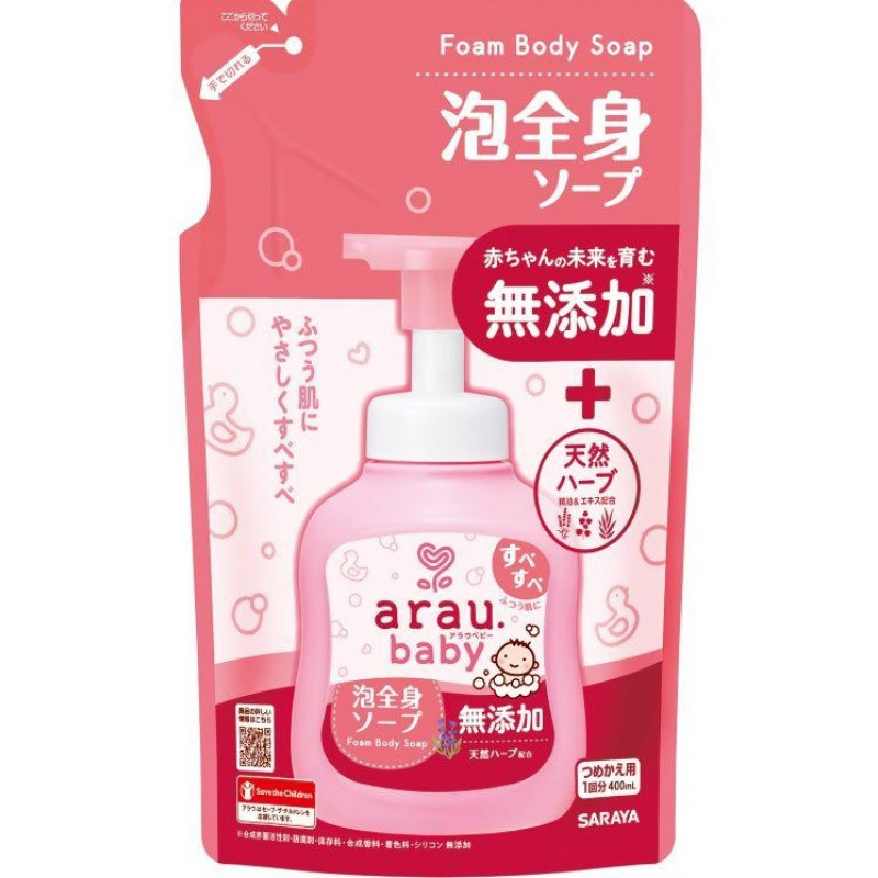 Густа піна з пінки для купання Arau Baby слугує як прошарок між вашою рукою та ніжною шкірою малюка, дозволяючи видаляти бруд і жир, не розтираючи шкіру.