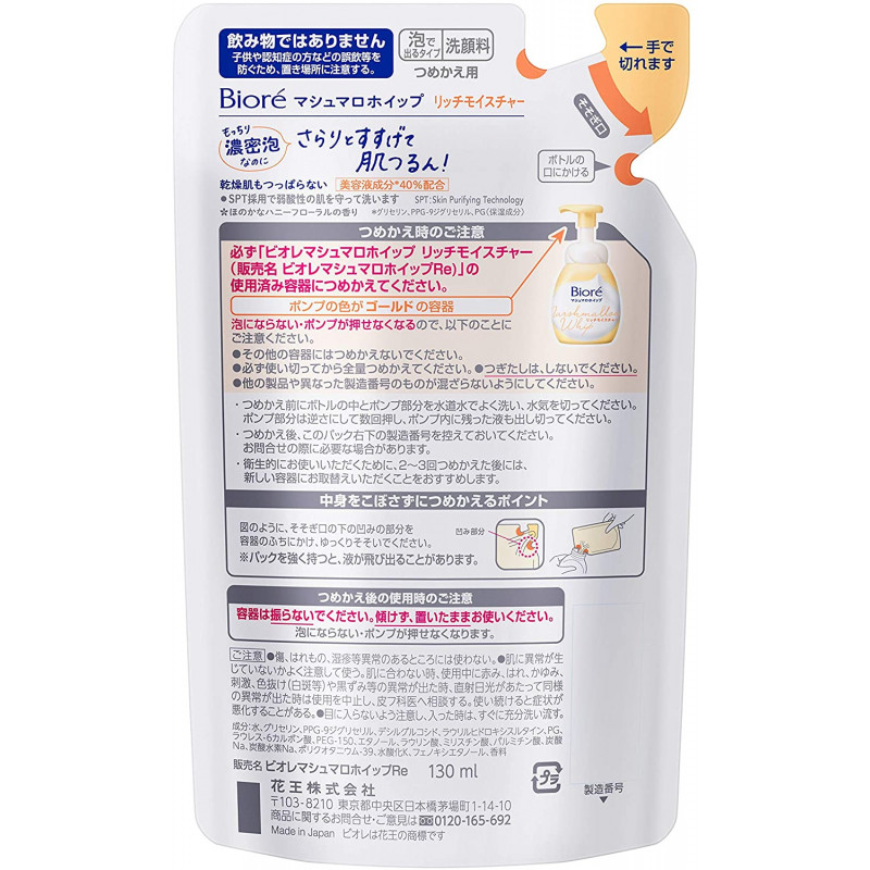 Biore Marshmallow Oczyszczająca pianka do mycia twarzy z ekstra nawilżeniem, uzupełniacz 130 ml