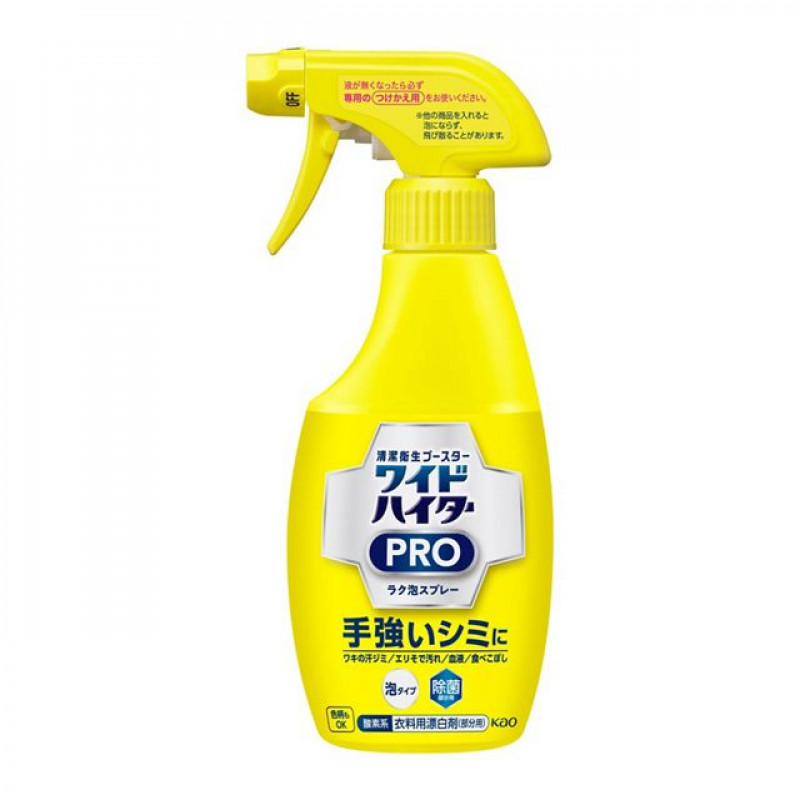 Tlenowy odplamiacz o szerokim spektrum działania Kao Haiter Pro bezpiecznie i szybko usuwa trudne plamy po jedzeniu, napojach, pocie lub krwi, a także wgryziony brud. Dostępny w formie sprayu, co bardzo ułatwia aplikację: piana wnika głęboko w włókna tkaniny i rozpuszcza zabrudzenie. Ekologiczny, bezpieczny dla skóry i zdrowia człowieka, dobrze spłukuje się z włókien tkanin. Nadaje się do tkanin kolorowych, bawełny, lnu, tkanin mieszanych i syntetycznych, wełny i jedwabiu. Posiada orzeźwiający kwiatowy zapach.