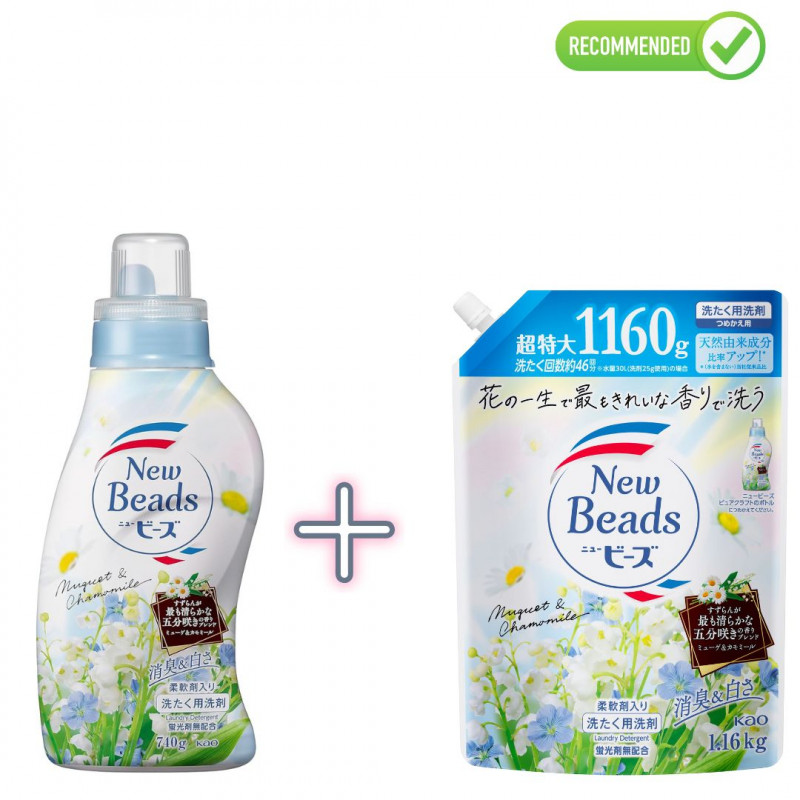 KAO New Beads Żel do prania z płynem zmiękczającym o zapachu konwalii 740 g + uzupełnienie 1160 g