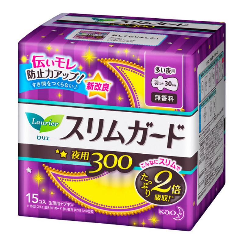 Delikatna poduszka bawełniana utrzymuje podpaskę na miejscu zarówno podczas siedzenia, jak i ruchu. Każda podpaska znajduje się w wygodnym woreczku do wyrzucenia. Laurier to marka, pod którą korporacja KAO produkuje środki higieny intymnej dla kobiet. Co trzecia kobieta w Japonii korzysta z produktów tej marki, dlatego Laurier od lat zajmuje pierwsze miejsce w rankingach sprzedaży. Obecnie dostępnych jest 88 rodzajów podpasek – od klasycznych po codzienne, w różnych formatach i do różnych potrzeb.