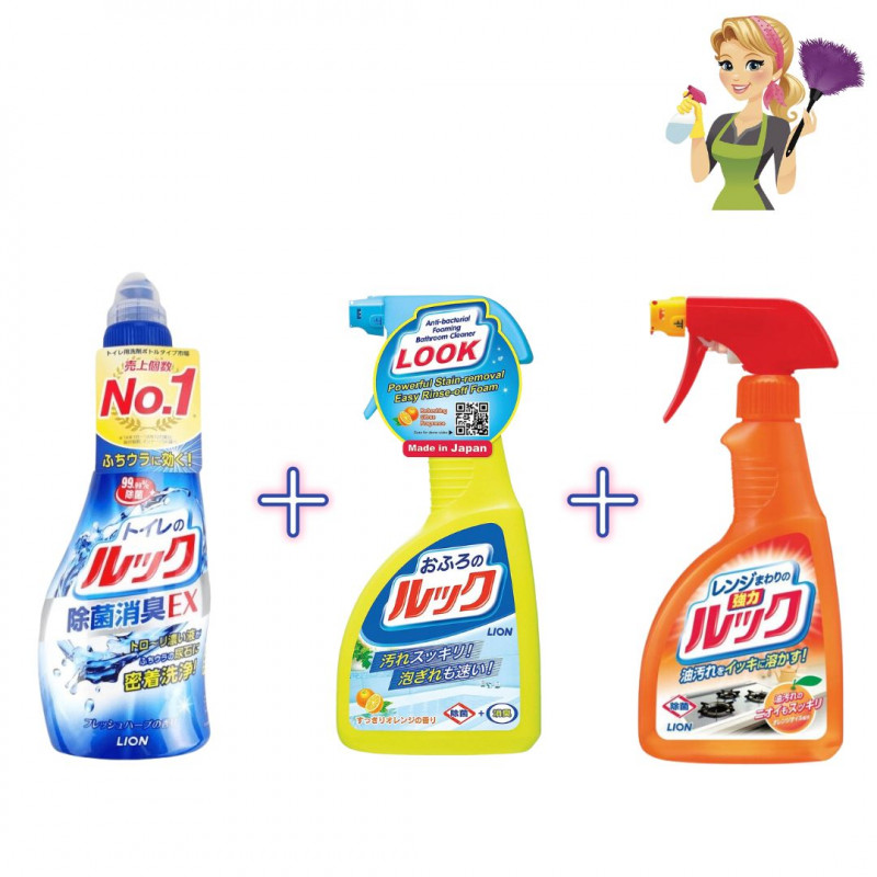 Japoński środek czyszczący LOOK w formie sprayu skutecznie usuwa uporczywe zabrudzenia tłuszczowe i olejowe z powierzchni płyt (gazowych, elektrycznych), kafli, lodówki, mebli kuchennych i otworów wentylacyjnych. Składniki myjące środka LOOK rozpuszczają lepki brud, a składniki alkaloidowe – zaschnięty brud. Butelka ma wygodne przełączanie między szeroką strugą piany (do równomiernej aplikacji) a wąską strugą piany (do miejscowego czyszczenia). Działa antybakteryjnie. Zapach pomarańczy i mięty.