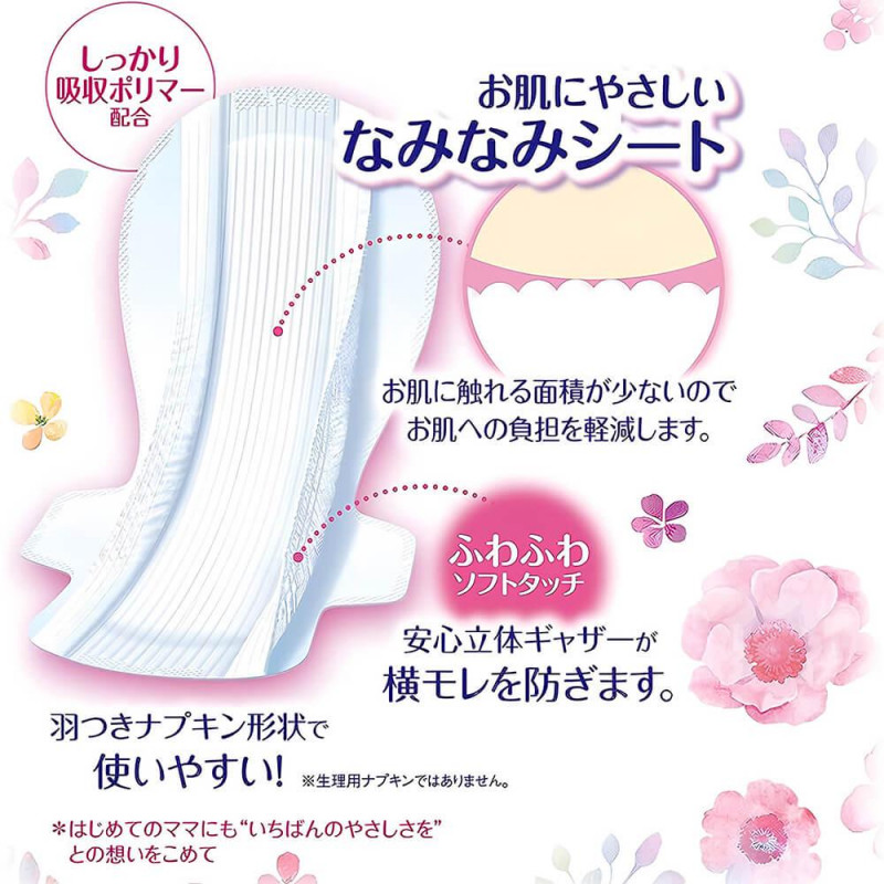 Technologia Nanami Sheet — podpaski z nowoczesną technologią, specjalnie opracowaną dla mam o wrażliwej skórze, zapewniają niezawodną ochronę przed przeciekaniem i nie powodują podrażnień.