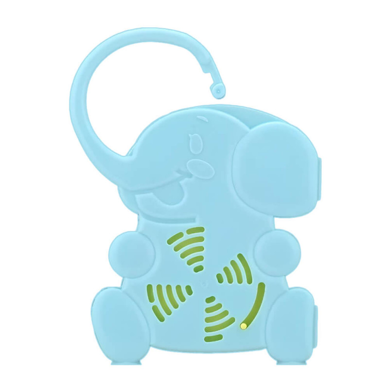 Zawieszka chroniąca przed owadami (komary, meszki itp.) może być stosowana u dzieci od urodzenia. Wygodny środek ochrony przed owadami w formie zawieszki – wystarczy ją przypiąć do łóżeczka lub wózka dziecięcego. Można też po prostu postawić ją w pokoju. Podwójne działanie naturalnego olejku cytronelowego i ekstraktu naturalnego insektycydu pyretrum skutecznie chroni dziecko przed owadami. Środek ma lekki cytrusowy zapach, łagodny dla dziecka. Zawieszka umożliwia regulację intensywności zapachu. Czas działania zawieszki wynosi około 90 dni.