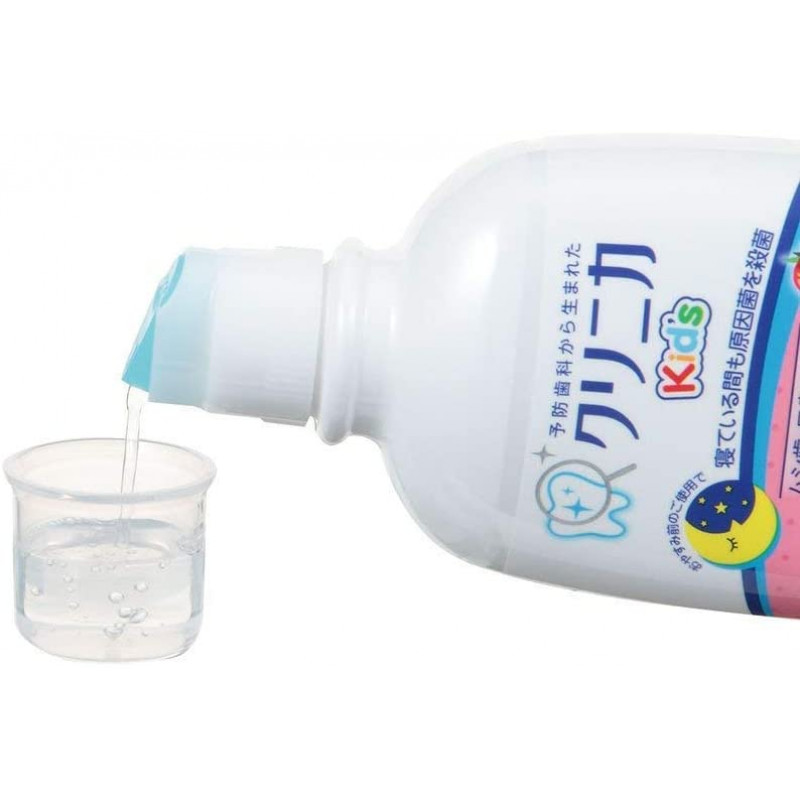 Sposób użycia: zdejmij dozownik z butelki, naciśnij górną część dozownika, przelej odpowiednią ilość płynu do nakrętki, pozwól dziecku przepłukać usta przez 20 sekund. Kontroluj, aby dziecko nie połknęło płynu.